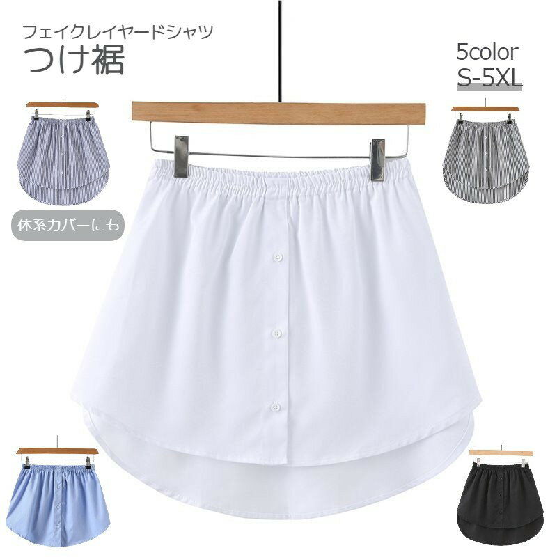 送料無料 付け裾 つけ裾 フェイクレイヤードシャツ レディース 女性 テールカット ウエストゴム スカート 無地 ストライプ ボタン 重ね着風 体型カバー 大きいサイズ カジュアル かわいい おしゃれ シンプル デイリー 普段使い お出かけ ボタン シン