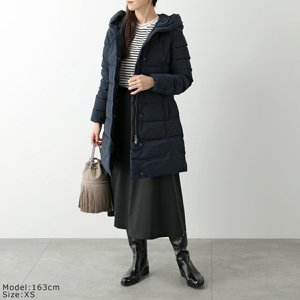 ウエストにかけては、グットシェープと切り替えがほどこされており、ダウン特有の丸いラインではなくスッキリとしたシルエット。