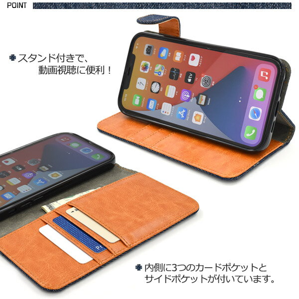 iPhone 12 Pro Max用ポケットデニムデザイン手帳型ケース デニムデザインの手帳型ケース。