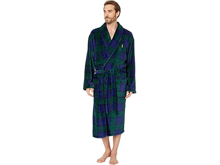 (取寄) ラルフローレン メンズ マイクロファイバー プラッシュ ロング スリーブ ショール カラー ローブ Polo Ralph Lauren men Microfiber Plush Long Sleeve Shawl Collar Robe Blackwatch Plaid/Basic Gold Pony Print