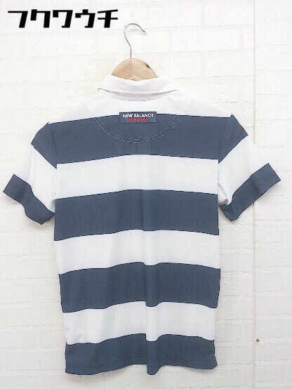 ◇ NEW BALANCE ニューバランス GOLF ボーダー ロゴ 半袖 ポロシャツ サイズ1 ネイビー ホワイト レディース 【中古】
