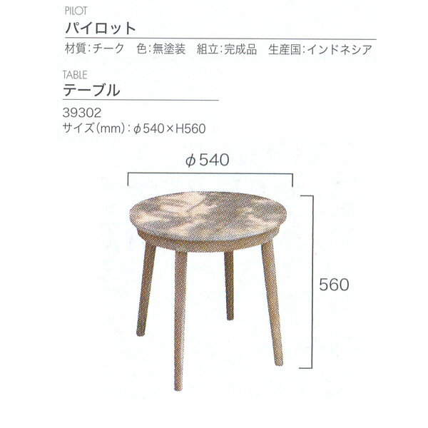 ジャービス商事 PILOT TABLE パイロットテーブル チーク 無塗装 39302 1台
