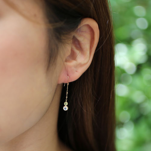 spec 素材 10金イエローゴールド、ぺリドット、ブルームーンストーン 留具 フック式 サイズ 長さ:32mm(ポスト部分込)24mm(チェーン部分)ぺリドット幅:3.5mm ブルームーンストーン幅:4.5mm ミラーボール幅:1.5mm×1mm 総重量 約0.2g×2刻印「K10」日本製【486364】貴金属アクセサリーの産地 山梨県甲府市 熟練職人により最終仕上げ工程 甲府で作られるアクセサリーシリーズ甲府市はドイツのイーダオーバーシュタイン市とならぶ世界二大宝石加工の街と言われています。