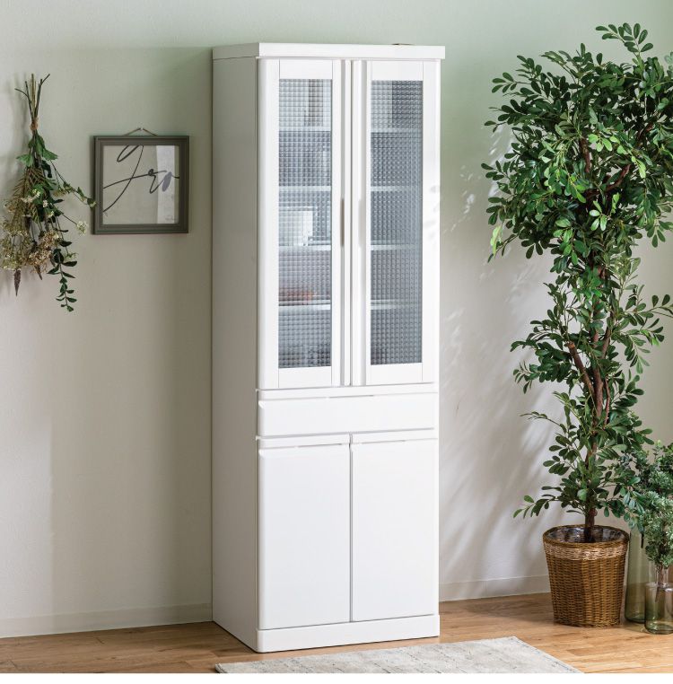 ●サイズ幅59.2×奥行45×高さ180cm●素材前板:MDF(ホワイトエナメル塗装)、クロスガラス引き出しフルオープンレール付き●生産国日本製●特徴完成品●注意事項こちらの商品は軒先渡しになります【代引きについて】こちらの商品は、代引きでの出荷は受け付けておりません。