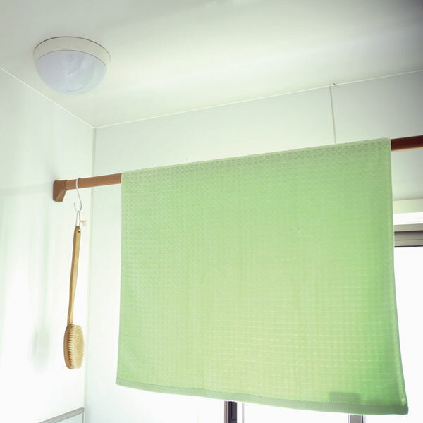 ねじや釘を使わずに壁にしっかりと固定できる伸縮棒!お部屋に合う木調のデザインです。