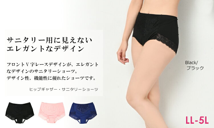 大きいサイズ レディース インナー サニタリーショーツ 生理用 下着 防水加工布 防水クロッチ 月経用 生理用パンツ 生理用ショーツ ランジェリー パンティー サニタリーパンツ レースショーツ フロントV字レース ヒップギャザー 羽根つき対応 かわいい おしゃれ 大人用 女性用 カジュアル ストレッチ素材 伸縮 よく伸びる 透けない 苦しくない 締めつけない 股上深め 深ばき 肌触り良し 女性下着 婦人下着 大人 きれいめ シンプル 30代 40代 50代 春 夏 秋 冬 オールシーズン 黒 紺 桃色 LL 3L 4L 5L sfy-all-inst0005フロントレースデザインがエレガントなサニタリーショーツ。
