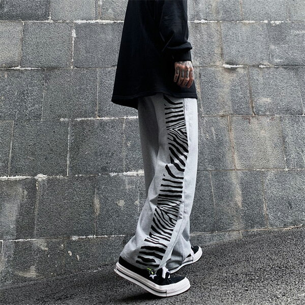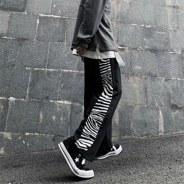 【即納あり】 スウェットパンツ ゼブラ柄 サイドライン ワイドパンツ ドロスト ブラック グレー ダンス 衣装 ヒップホップ コスチューム 韓国ファッション 大きいサイズ 個性的 服