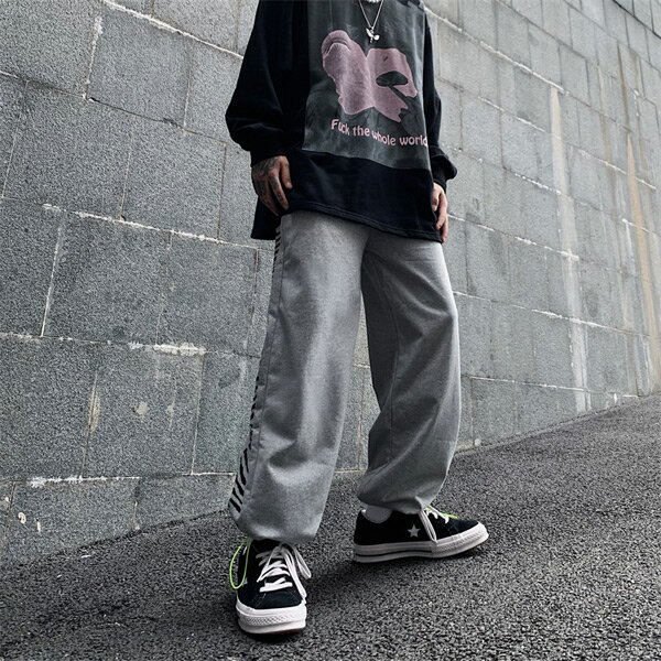 スプリット スポーツ パンツ メンズ 秋冬 ルーズ カジュアル ジャージ ズボン ダンス スウェット 黒 グレー