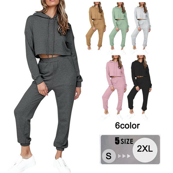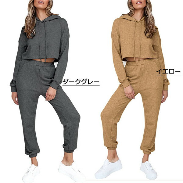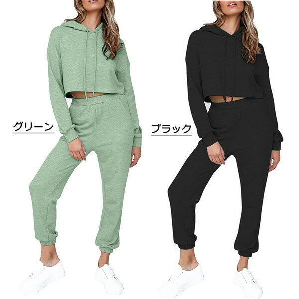 レディース パーカー 長袖ズボン上下セット 秋 無地 セットアップ トップス スウェット 無地 ジャージ ウエストゴム トレーナー ルームウェア ヒップホップ ダンス S~2XL ピンク 薄グレー 黒 黄色 緑