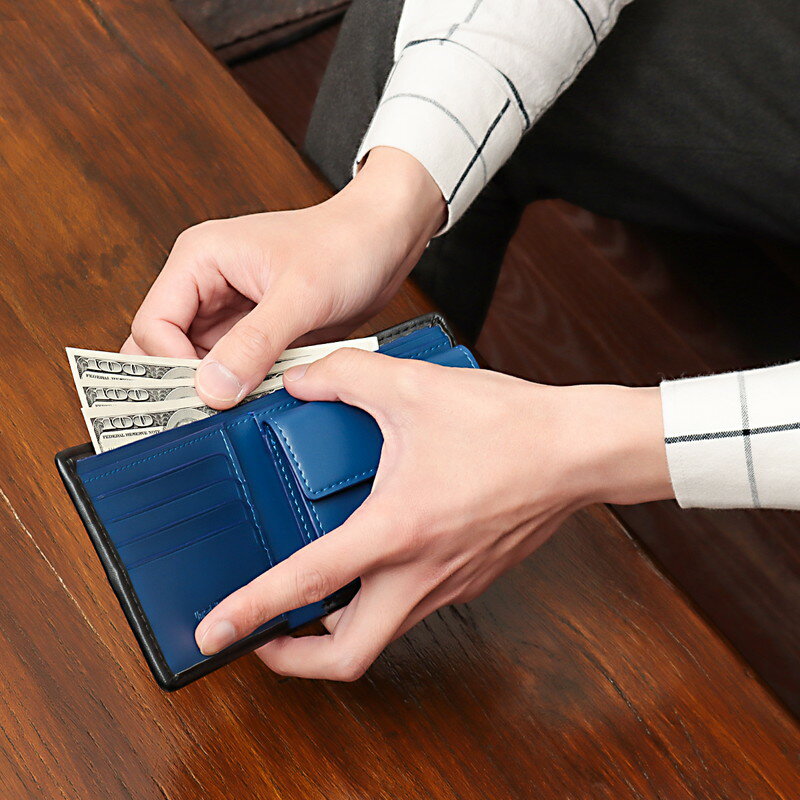 長財布やラウンドファスナー財布には、どうしても劣ってしまう収納面を トータルの実用性でカバーした、機能的な二つ折り財布です。